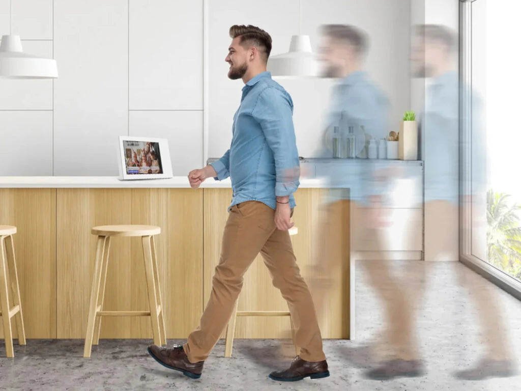 Nuestro diseño ecológico de ahorro de energía apaga automáticamente el dispositivo cuando sales de la habitación, y espera ansioso tu regreso, mostrando nuevos momentos a medida que te acercas.