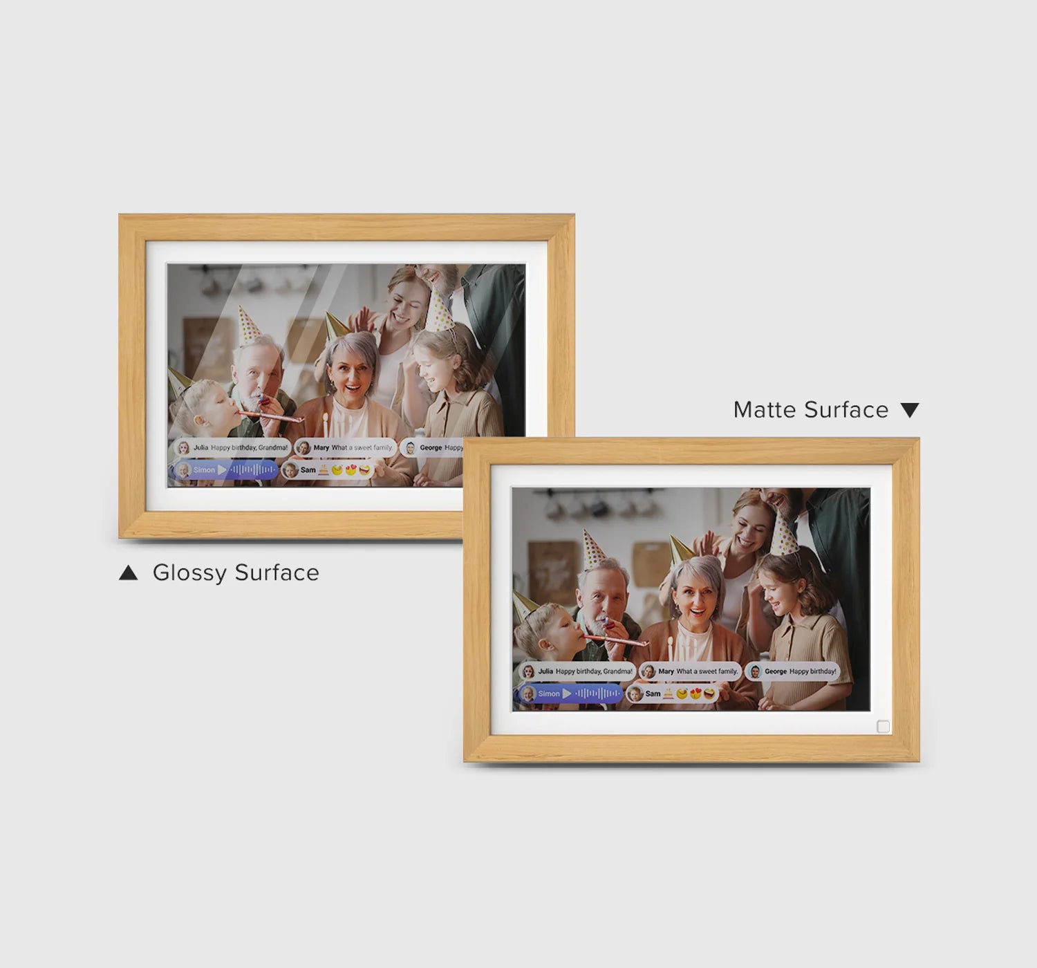 El Frame Live se integra perfectamente con nuestra aplicación myFirst Circle, lo que le permite compartir fácilmente fotos o vídeos con sus seres queridos para mostrarlos en su pantalla mate antirreflejos.